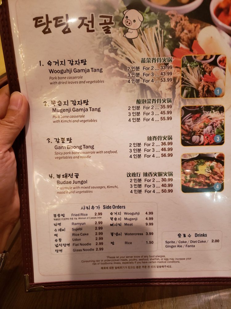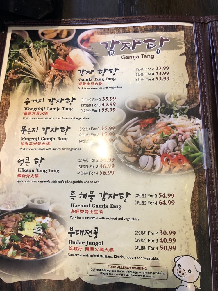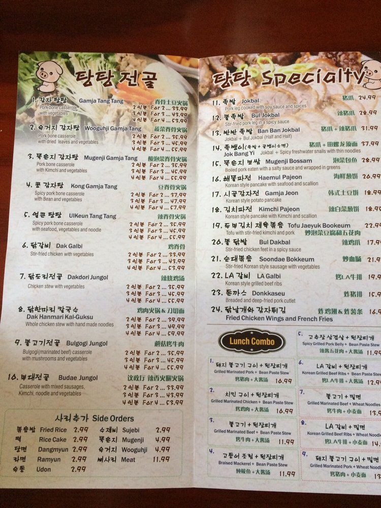 Gamja Tang Tang, a Korean restaurant located in Fort Lee, NJ, offers a variety of traditional dishes packed with rich flavors. Customers rave about the seafood pancake, bossam, and hearty tangs (soups) bursting with savory goodness. The small portion sizes are generous, easily feeding a party of four. Specialties like Gamja Tang, pig trotters, and ban Jokbal are highly recommended for their flavorful and comforting qualities. The restaurant's cozy atmosphere and attentive staff enhance the overall dining experience. Must-try dishes include the Ugeoji Gamjatang, known for its delicious broth and tender meat, and the Ban Ban Jokbal, offering immaculate flavors in a shareable portion. With a variety of options for meat lovers and vegetarians, Gamja Tang Tang is the go-to spot for authentic Korean cuisine.